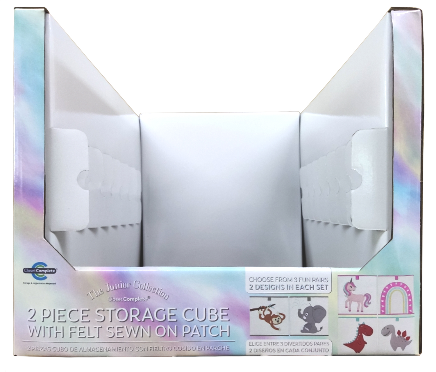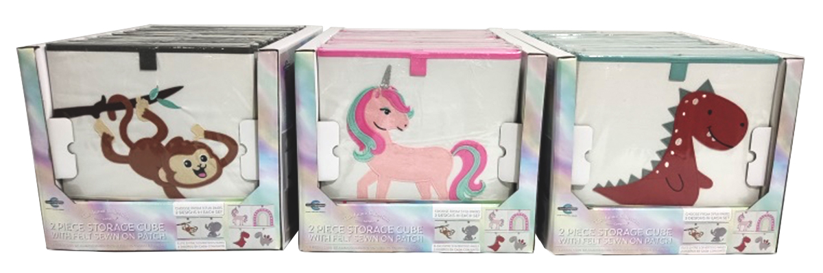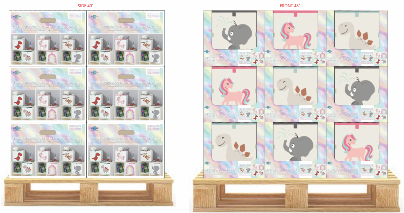 Foldable storage cubes for young children. Packaging insert and display PDQ for pallets.