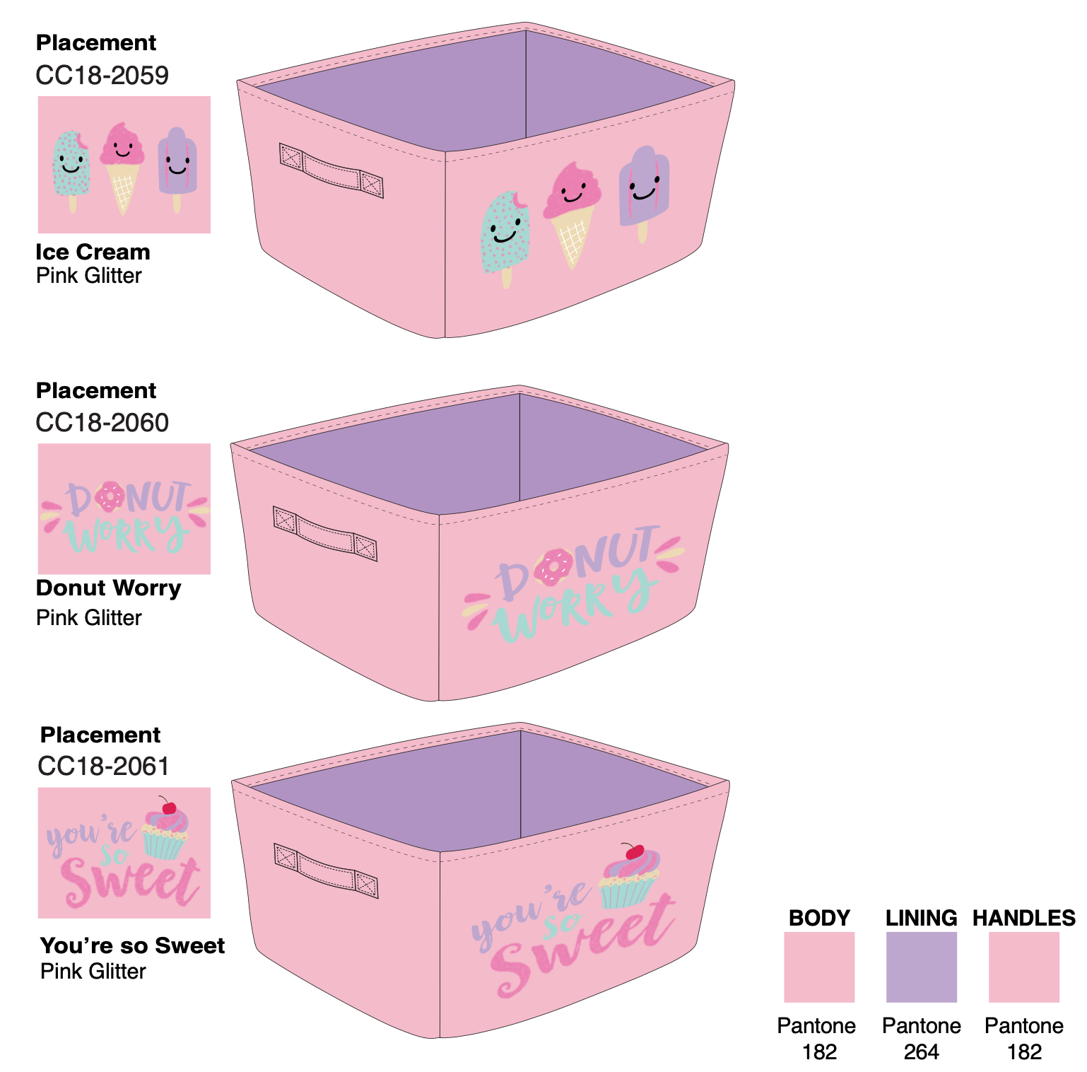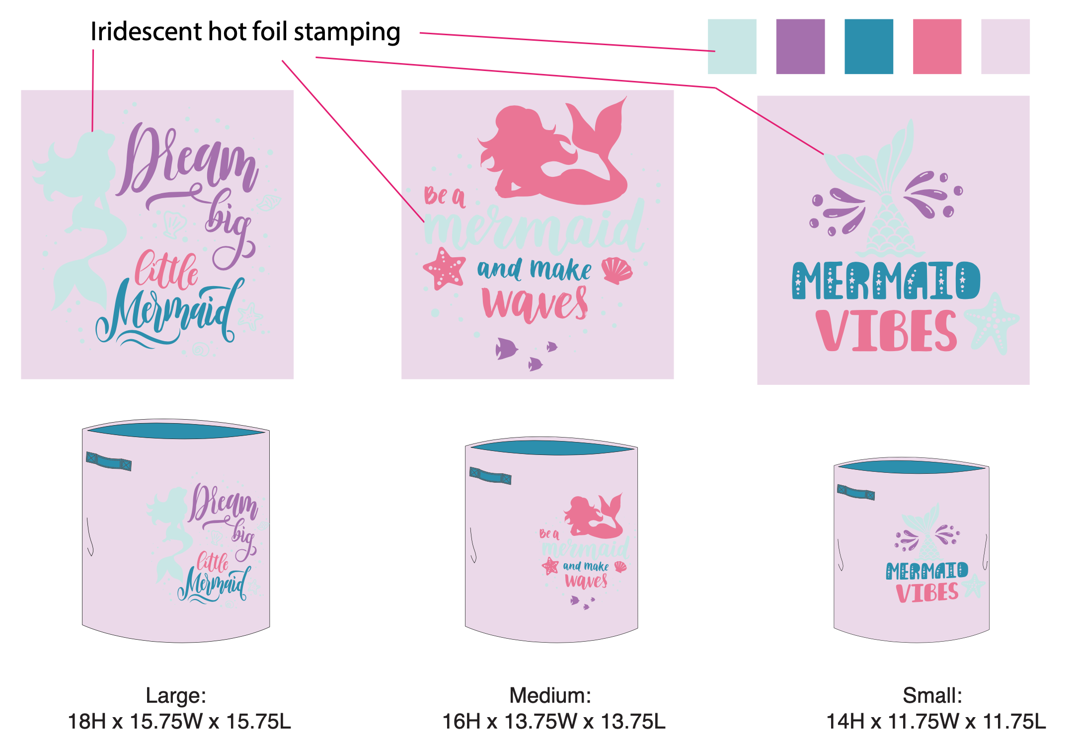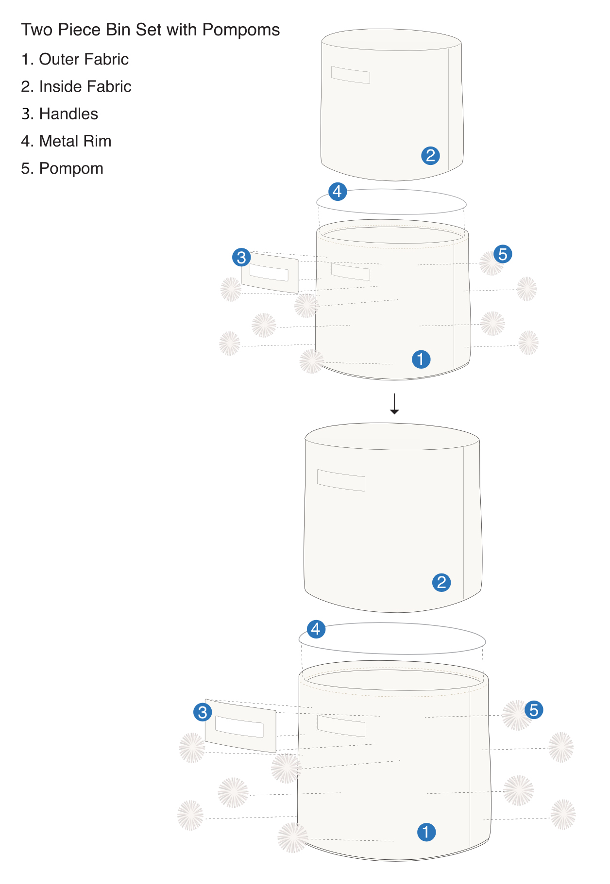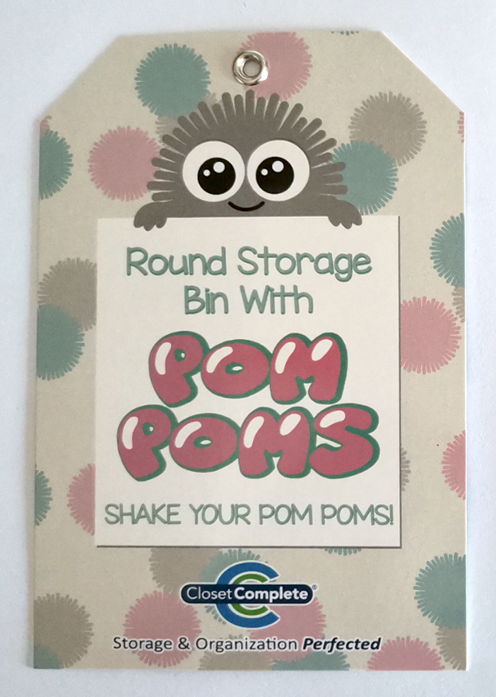 Decorative bins with pom pom. Hangtag design.