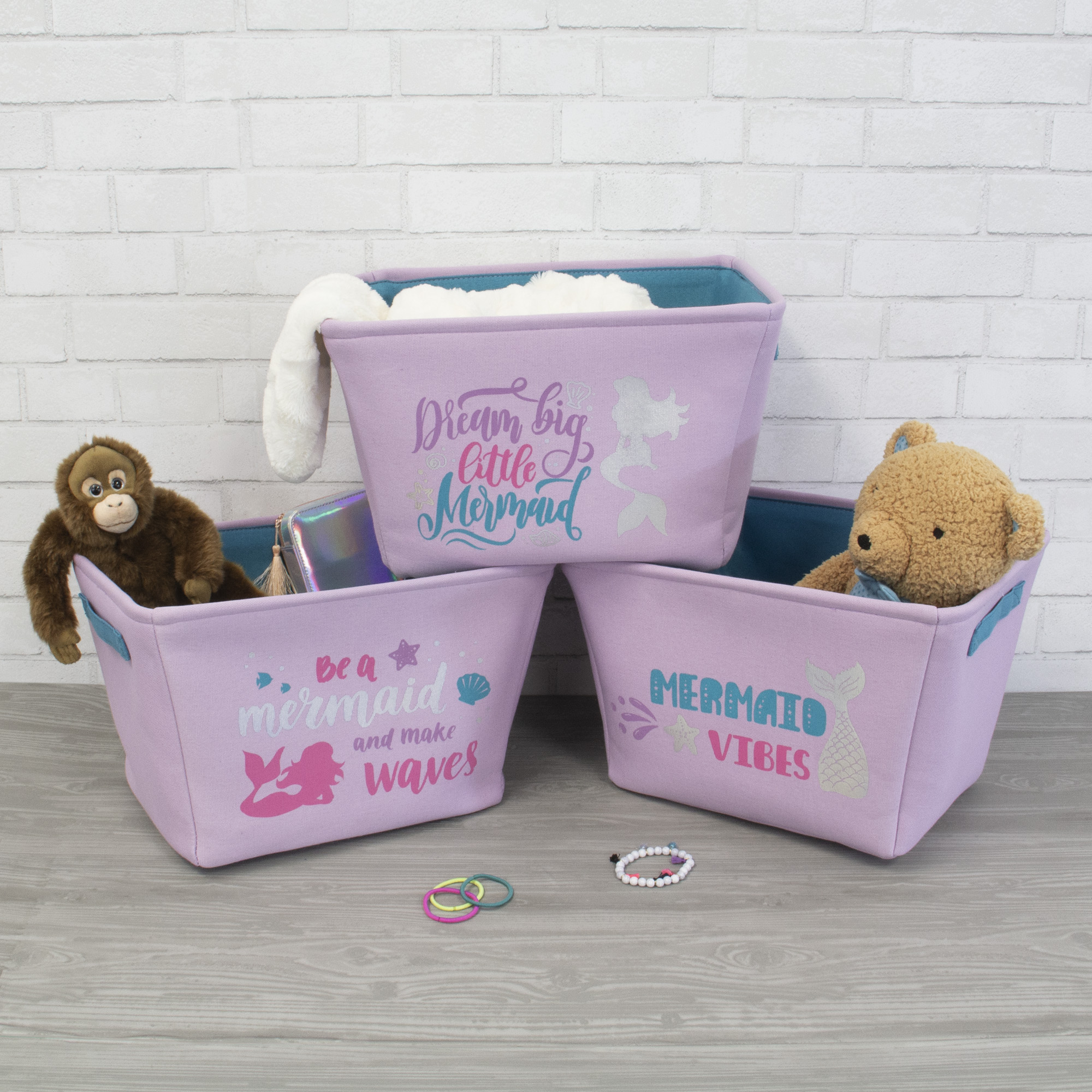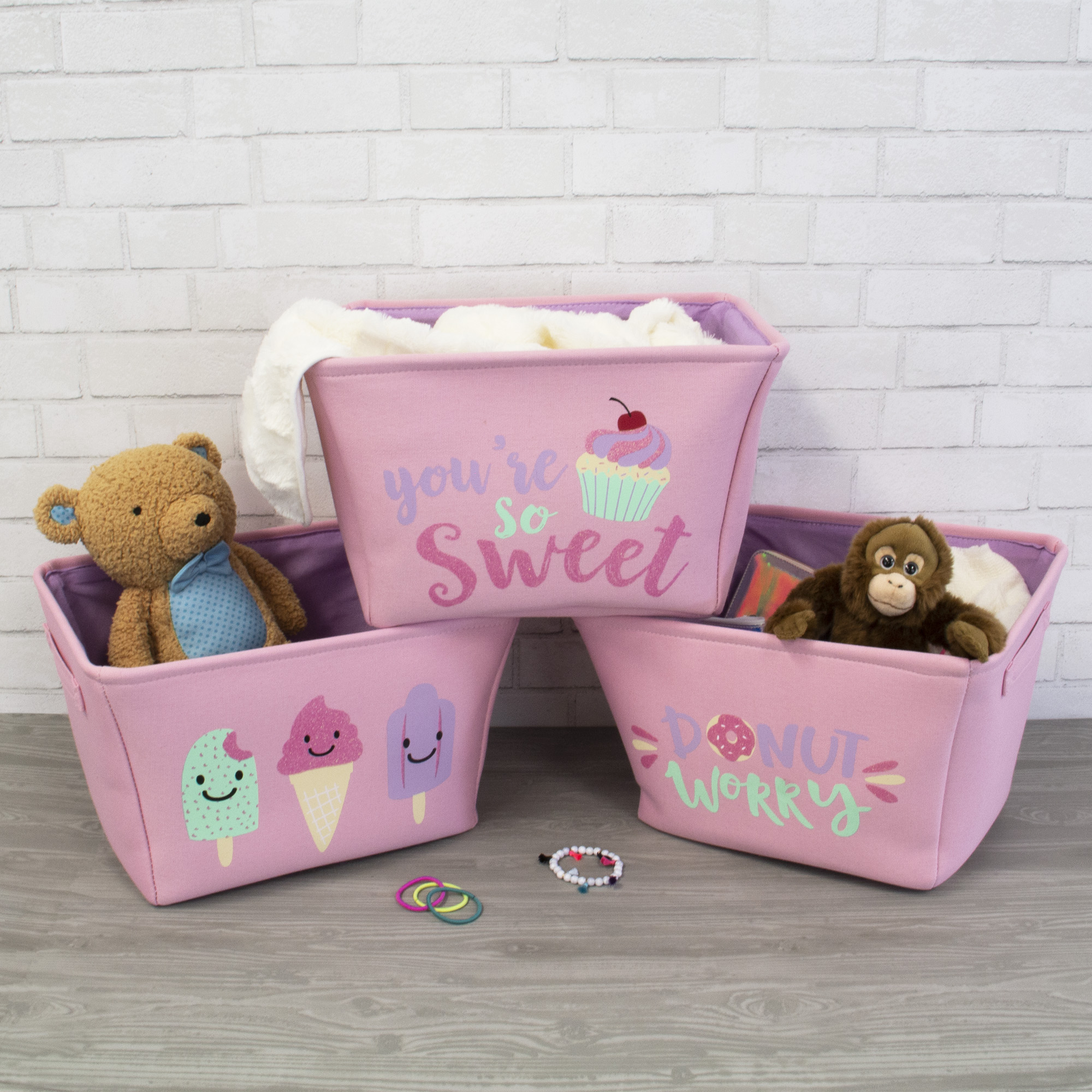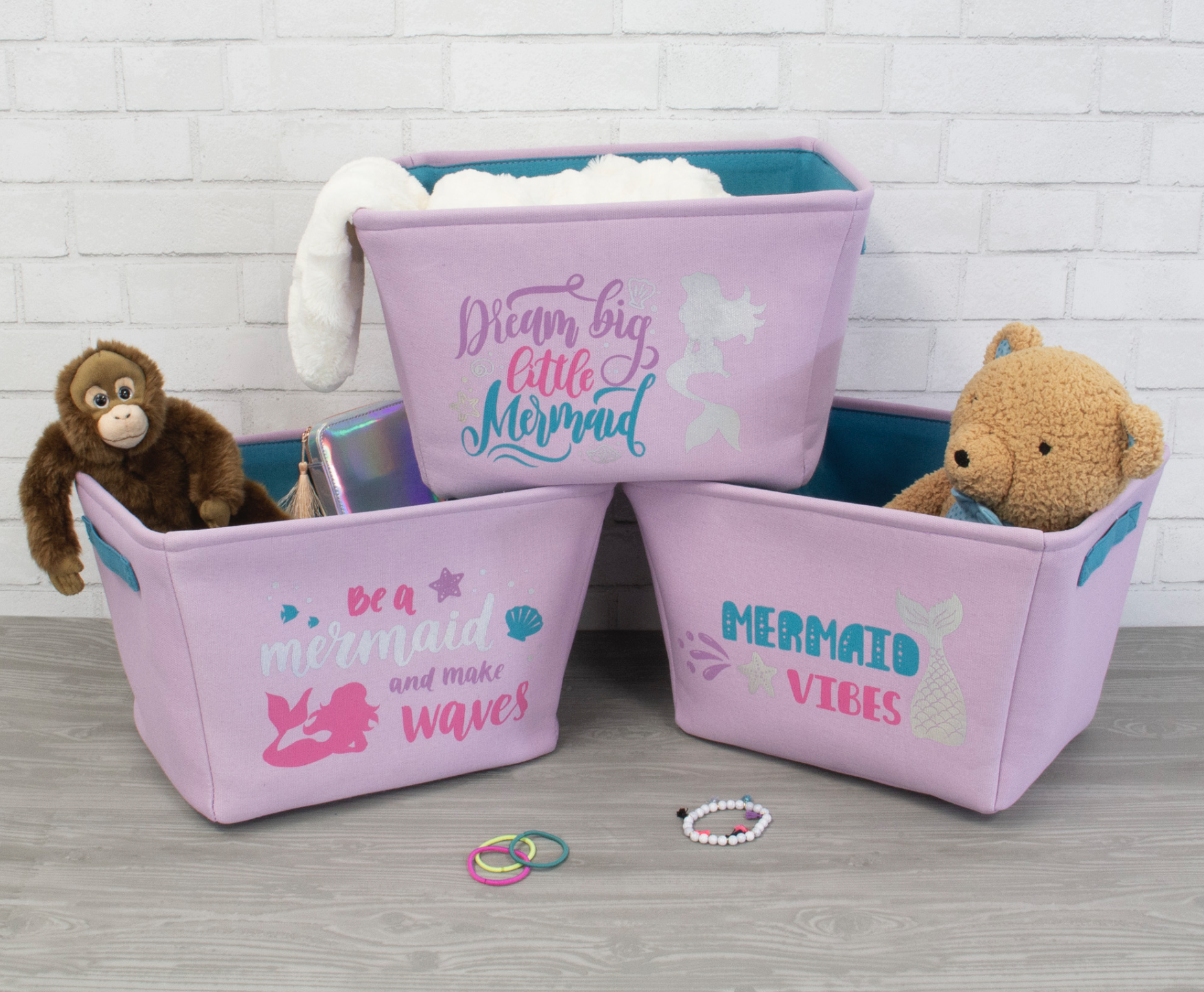 Decorative bins with pom pom. Hangtag design.
